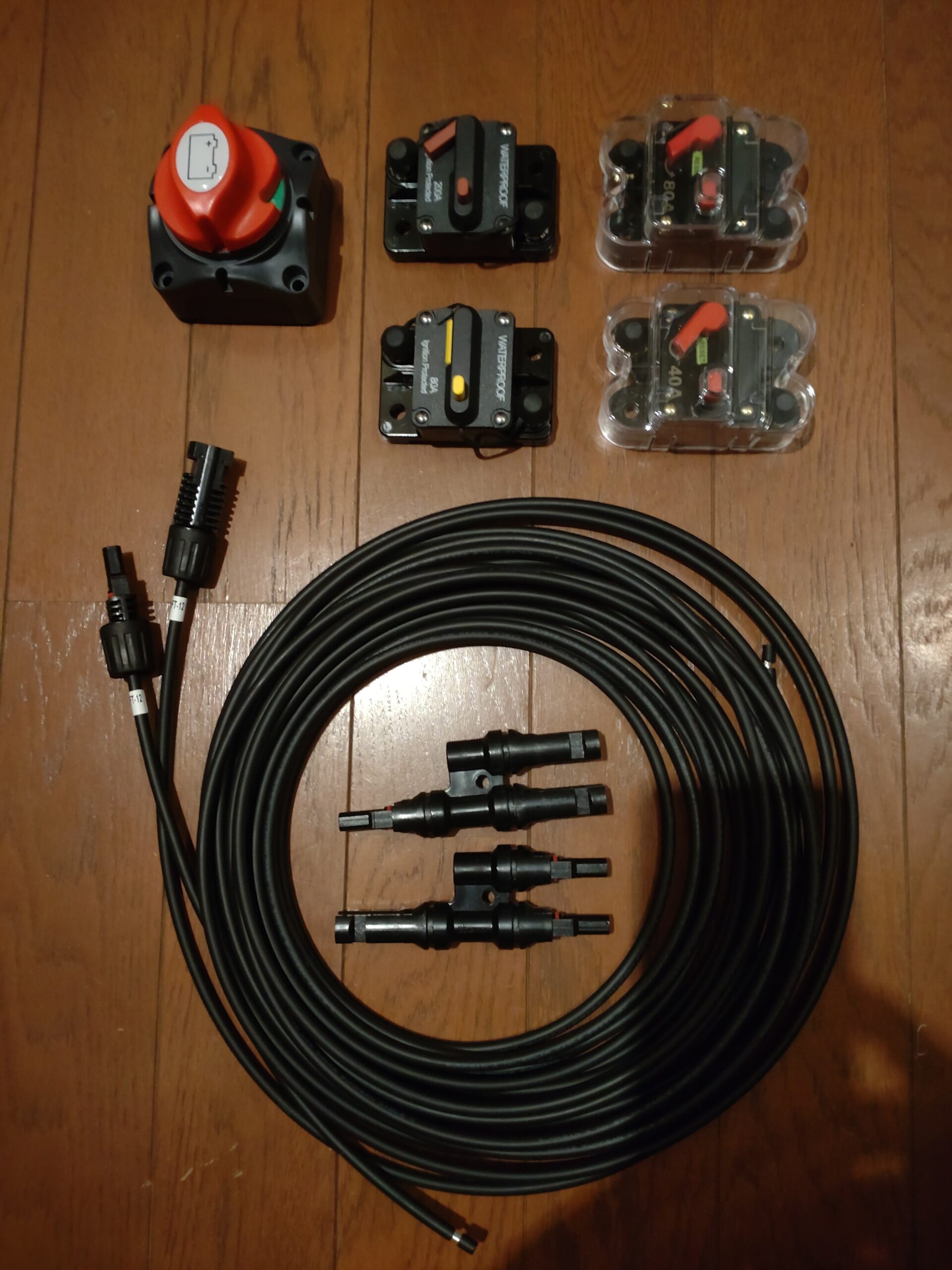 MC4コネクターのケーブル6m付きの物とMC4コネクターの並列接続のためのコネクターも来ました。